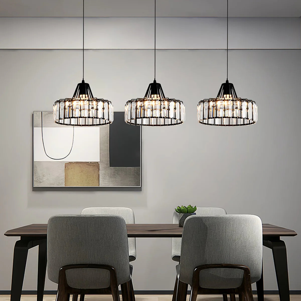 La lampada a sospensione Cristallo Nero dona un aspetto elegante e caldo a ogni ambiente. Il design unisce una struttura nera a elementi di cristallo trasparente che diffondono la luce in modo particolare. Quando la lampada è accesa, i cristalli creano riflessi splendenti che generano un'atmosfera piacevole.