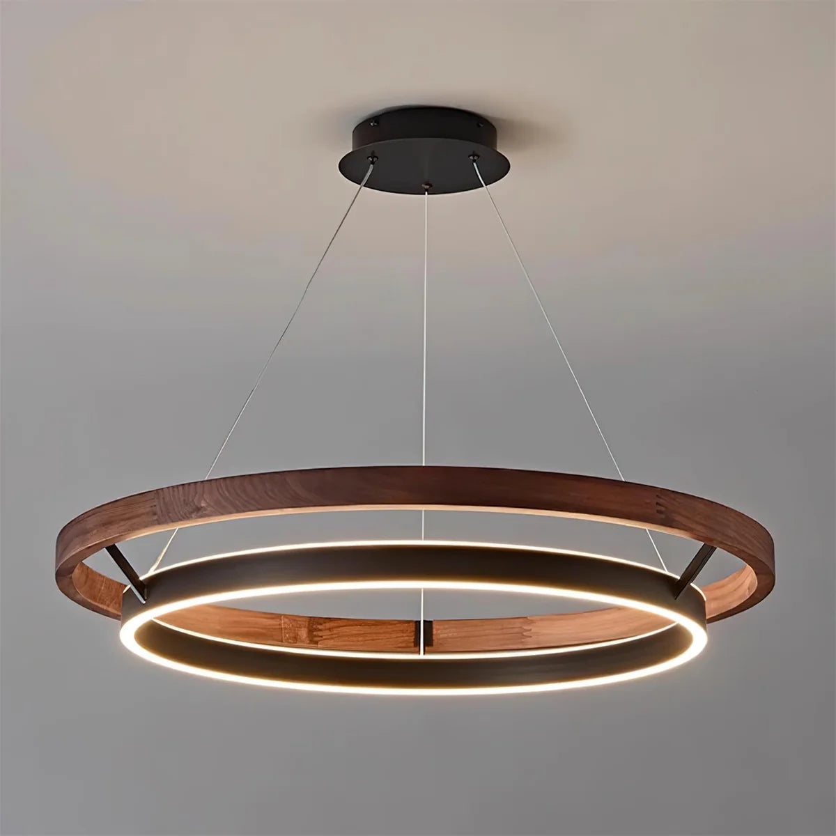 La lampada a sospensione De Beylus Ringdesign irradia eleganza moderna grazie alla combinazione di legno e metallo nero. Il design a doppio anello conferisce alla lampada un aspetto essenziale, mentre la luce LED integrata garantisce un’illuminazione calda e uniforme. Disponibile in diverse misure (Ø 60 cm, Ø 80 cm, Ø 100 cm e Ø 120 cm), questa lampada a sospensione in legno è ideale sopra il tavolo da pranzo, nel soggiorno o come illuminazione raffinata in uno studio. Grazie al cavo regolabile e alla tecnologia LED durevole con una durata di 50.000 ore, questa lampada non è solo un elemento d’arredo, ma anche pratica e a risparmio energetico.
