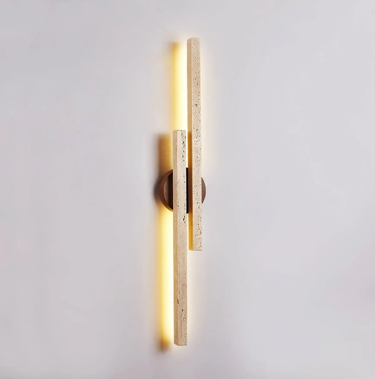 De Duo Aemesi Natuursteen Wandlamp verenigt sfeervolle verlichting met verfijnde architectuur. Vervaardigd uit natuurlijk travertijn en afgewerkt met een slanke verticale vorm, straalt deze wandlamp warm diffuus licht uit langs beide zijden. De zachte gloed benadrukt het organische karakter van het steen terwijl het geïntegreerde LED-licht eigentijdse elegantie toevoegt. Ideaal voor moderne woonkamers, slaapkamers, hallen of minimalistische interieurs waar natuurlijke materialen en wandverlichting samenkomen.
