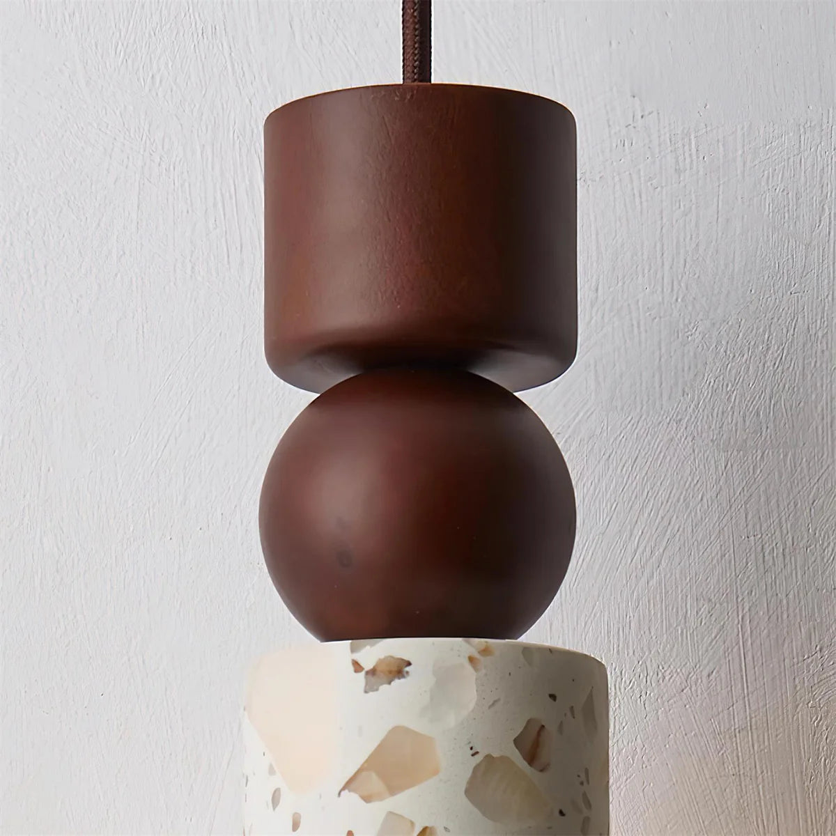 De Armis Hanglamp brengt de perfecte combinatie van natuurlijke materialen en moderne elegantie in je interieur. Met een cilindervormige terrazzo lampenkap en warme houten accenten verspreidt deze hanglamp een sfeervolle gloed door zijn speelse lichtopeningen. Het dansende licht achter het terrazzo creëert een rustieke en eigentijdse uitstraling die ideaal past boven de eettafel, in de woonkamer of in een moderne keuken. Dankzij zijn tijdloze vormgeving en aardse tinten is de Armis Hanglamp een echte blikvanger die warmte, stijl en ambachtelijke charme toevoegt aan elke ruimte.