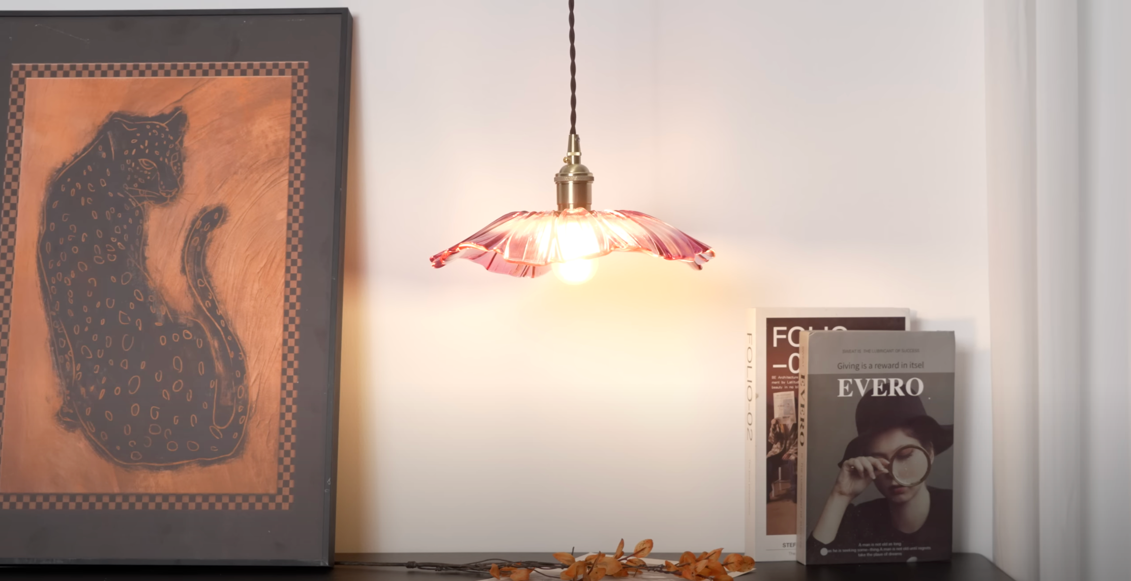 Bloemvormige glazen kap – Zorgt voor een sierlijk silhouet en een speels lichteffect.