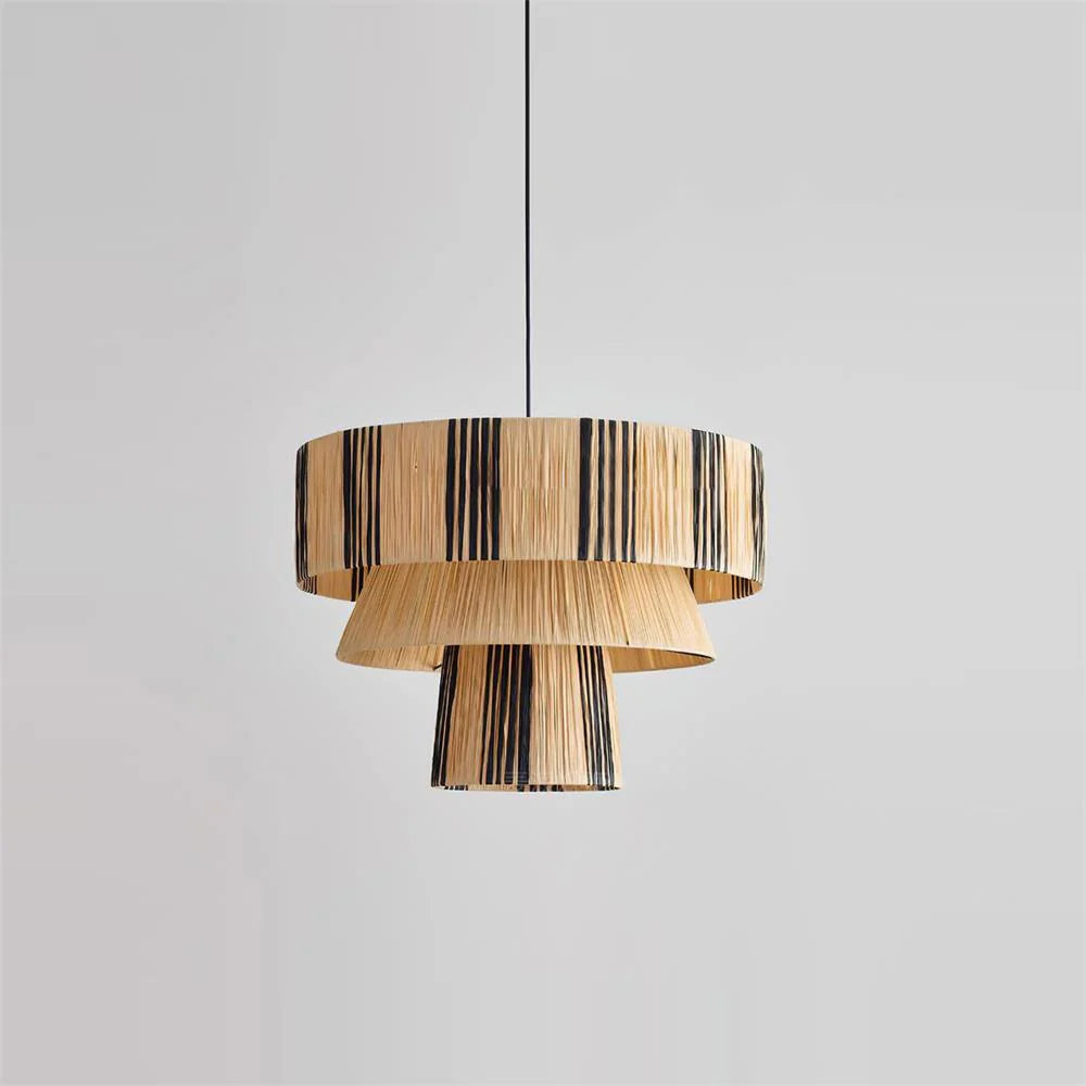 De Hesilino Hanglamp brengt een moderne interpretatie van natuurlijke texturen in huis. Met zijn gelaagde ontwerp van handgeweven raffia creëert deze lamp een opvallend maar warm geheel. De zwarte verticale accenten geven het ontwerp een ritmische uitstraling die een krachtig contrast vormt met de lichtbruine vezels. Perfect voor boven de eettafel, in de woonkamer of als eyecatcher in een ruime hal. Dankzij de variatie in afmetingen is de Hesilino Hanglamp geschikt voor zowel compacte als grote ruimtes.
