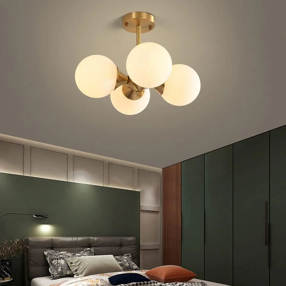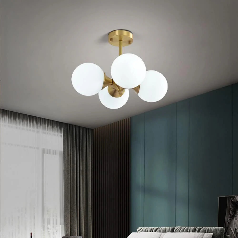 De Sevella Bulb Plafondlamp is een stijlvolle keuze voor wie op zoek is naar een moderne plafondlamp met een speels en warm karakter. Deze lamp combineert een glazen kap met een elegante messing basis en zorgt voor een sfeervolle verlichting in elke slaapkamer, woonkamer of hal. De vier glazen bollen verdelen het licht gelijkmatig, waardoor een zachte en uitnodigende gloed ontstaat. Dankzij het tijdloze ontwerp past deze lamp moeiteloos in zowel klassieke als moderne interieurs. Met de E26/E27 fitting kun je zelf kiezen welke lichtbron het beste past. De lamp is eenvoudig te monteren en ideaal voor een gezellige en functionele verlichting in huis.