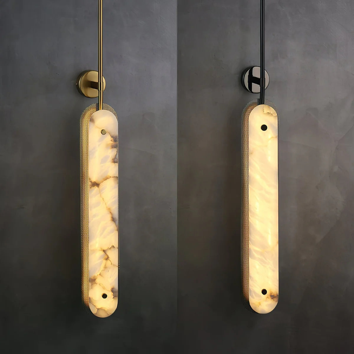 De Melyse Alabasten Wandlamp is een stijlvolle toevoeging aan elk modern interieur. Deze elegante wandlamp is gemaakt van echt albast en metaal, waardoor het licht zacht en sfeervol door de natuurlijke aders van het steen schijnt. Dankzij de geïntegreerde LED-verlichting geniet je van energiezuinig en duurzaam licht met keuze uit warm, neutraal of koel wit. De Melyse is ideaal voor gebruik in de woonkamer, slaapkamer of hal en combineert prachtig met zowel gouden als zwarte accenten. Perfect voor wie op zoek is naar een subtiel, maar verfijnd lichtobject aan de muur.