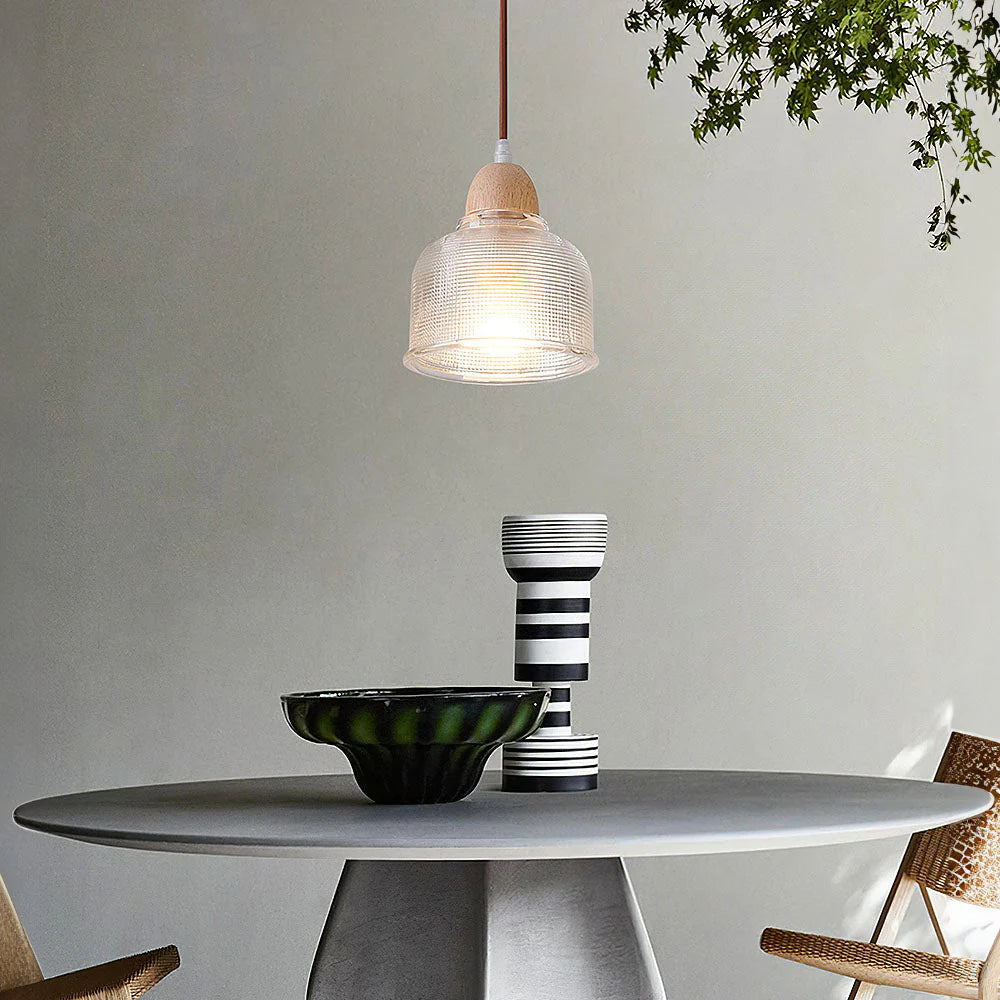 Breng een warme en verfijnde sfeer in je interieur met de Virenna hanglamp. Deze glazen hanglamp combineert natuurlijke houten accenten met helder glas, perfect voor wie op zoek is naar stijlvolle verlichting boven de eettafel, in de woonkamer of slaapkamer. Dankzij het subtiele ontwerp en de E27 fitting is de Virenna hanglamp eenvoudig te combineren met diverse interieurstijlen, van modern tot Scandinavisch. Ideaal als plafondlamp of als sfeermaker boven een keukeneiland of in de hal. Creëer een uitnodigende ambiance met deze glazen hanglamp die elegantie en functionaliteit samenbrengt.