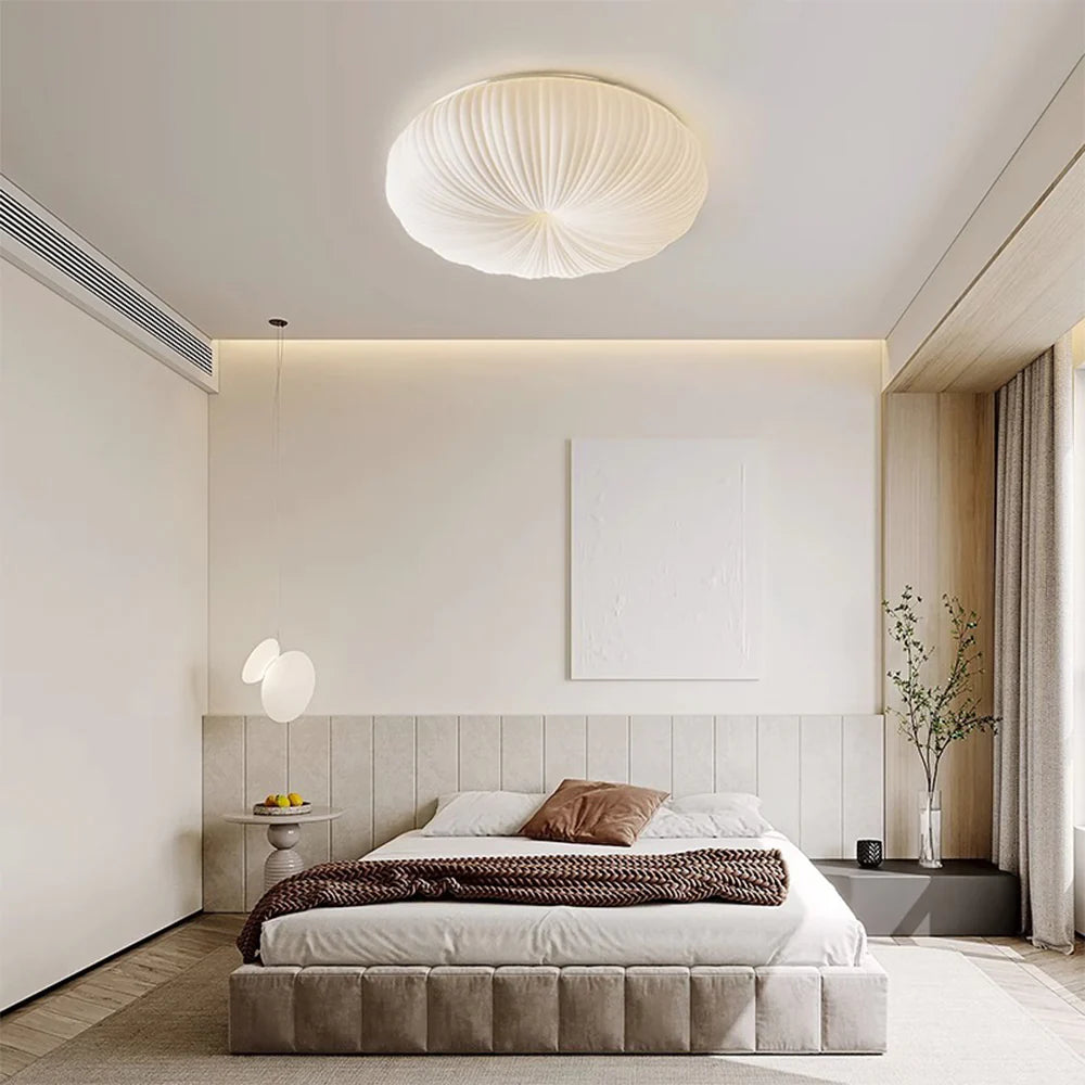 Breng rust en elegantie in je interieur met de Pompas plafondlamp. Deze stijlvolle plafondlamp combineert een zacht geplooid design met diffuus LED-licht dat elke kamer een warme en uitnodigende sfeer geeft. Of je nu een slaapkamer, woonkamer of eetkamer inricht, de Pompas plafondlamp is een subtiele maar opvallende aanvulling op je plafond.