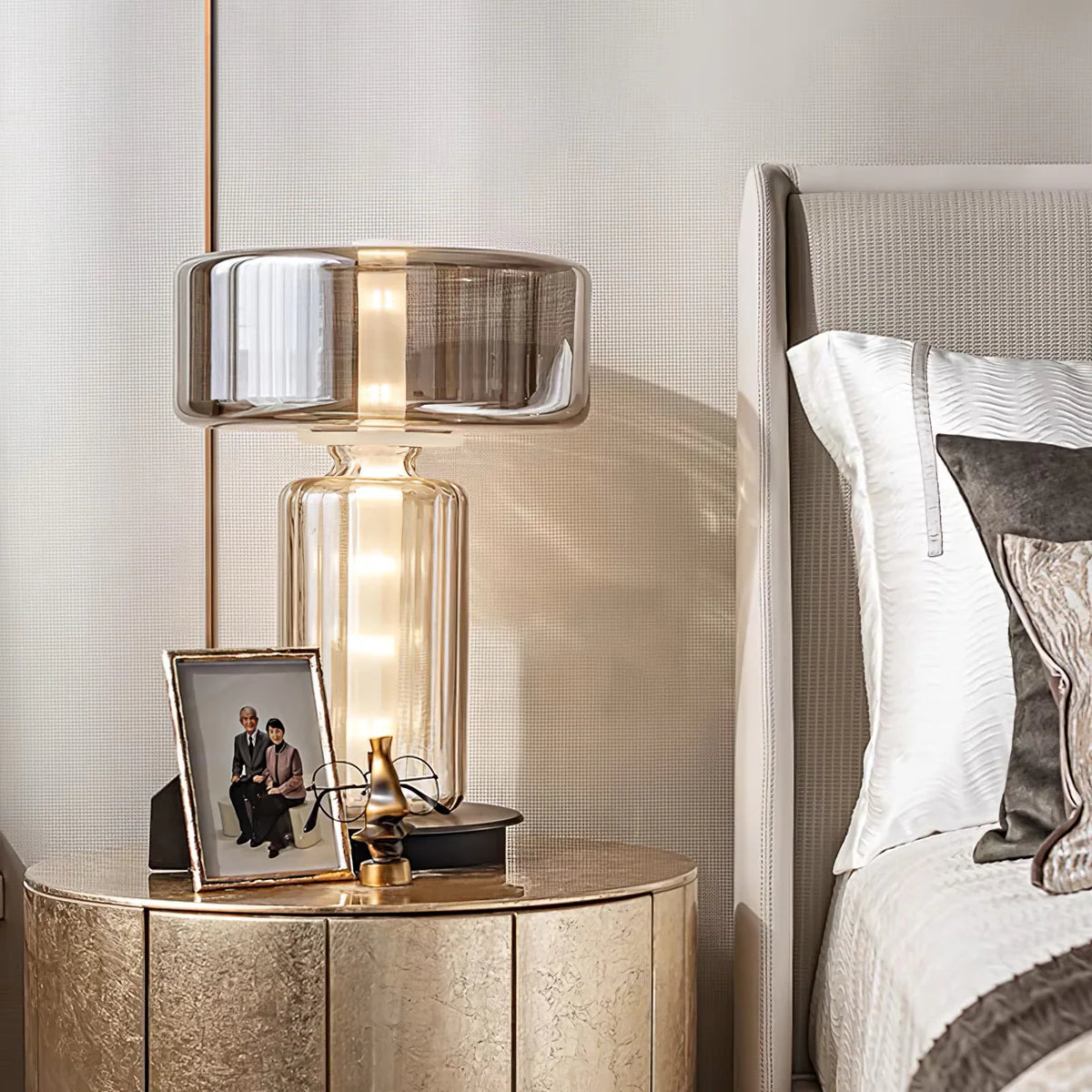 De Repanuzi Tafellamp is een moderne tafellamp die vakmanschap en design combineert. De lamp is vervaardigd uit mondgeblazen glas en stevig ijzer, met een stijlvolle afwerking in rookgrijs. Dankzij de geïntegreerde LED-lichtbron geniet je van duurzaam en energiezuinig licht in verschillende kleurtinten: warm wit, neutraal wit of koel wit. De bijzondere zilveren of gouden afwerking geeft het glas een half-transparant effect en maakt de lamp een echte blikvanger. Met de eenvoudige aanraakbediening kun je het licht aanzetten, dimmen of uitschakelen door het glas aan te raken. Perfect voor gebruik in de woonkamer, slaapkamer of kantoorruimte.