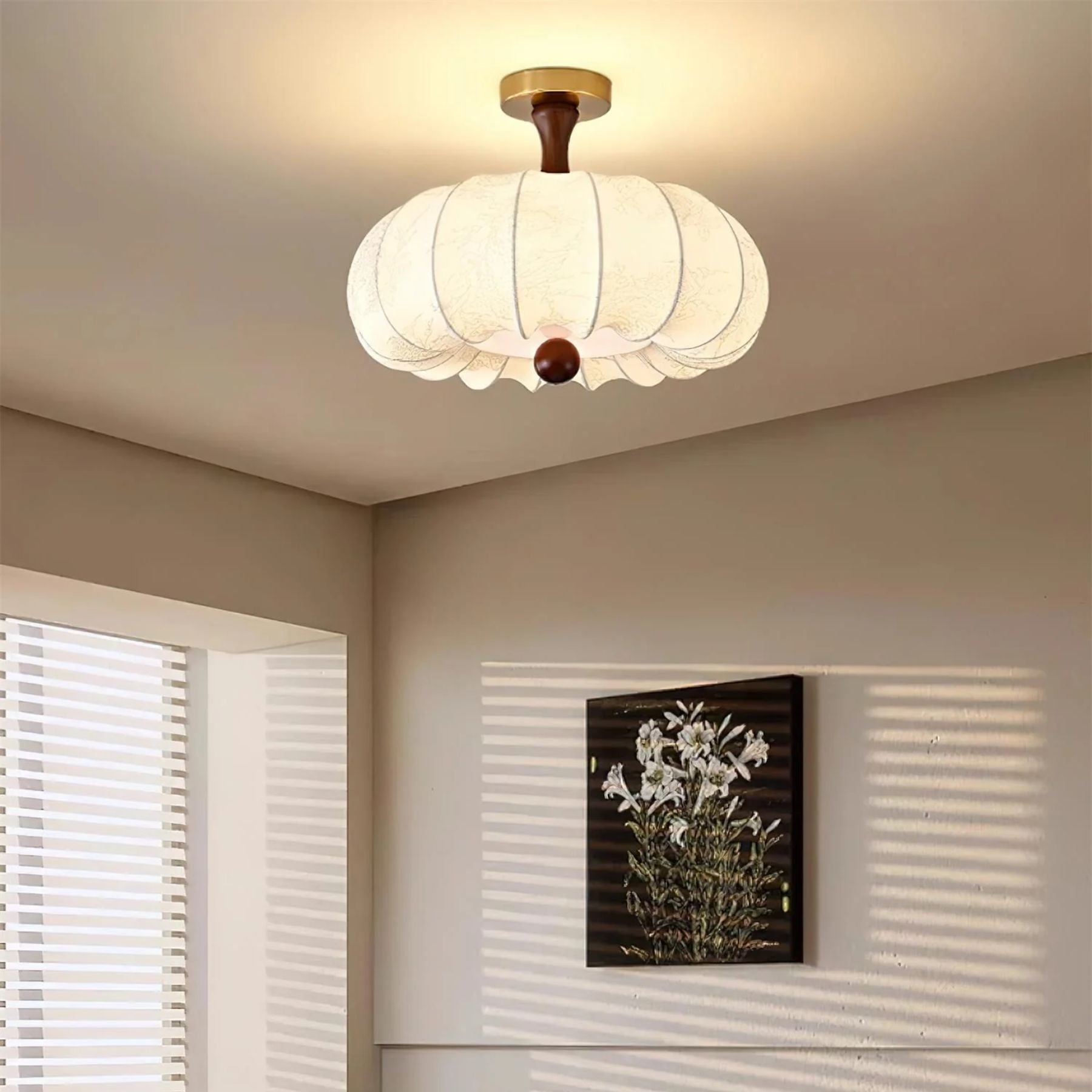 De Riovale Plafondlamp brengt een vleugje elegantie en artistieke verfijning in huis. Met zijn stoffen kap met subtiele bloemmotieven straalt de lamp een zachte en warme gloed uit die elke kamer een sfeervol karakter geeft. De combinatie van hout en metaal zorgt voor een harmonieus contrast tussen natuurlijke warmte en moderne afwerking. Dankzij de ronde vormen en zachte tinten is deze plafondlamp ideaal voor woonkamers, slaapkamers en eetkamers waar sfeer en stijl samenkomen.