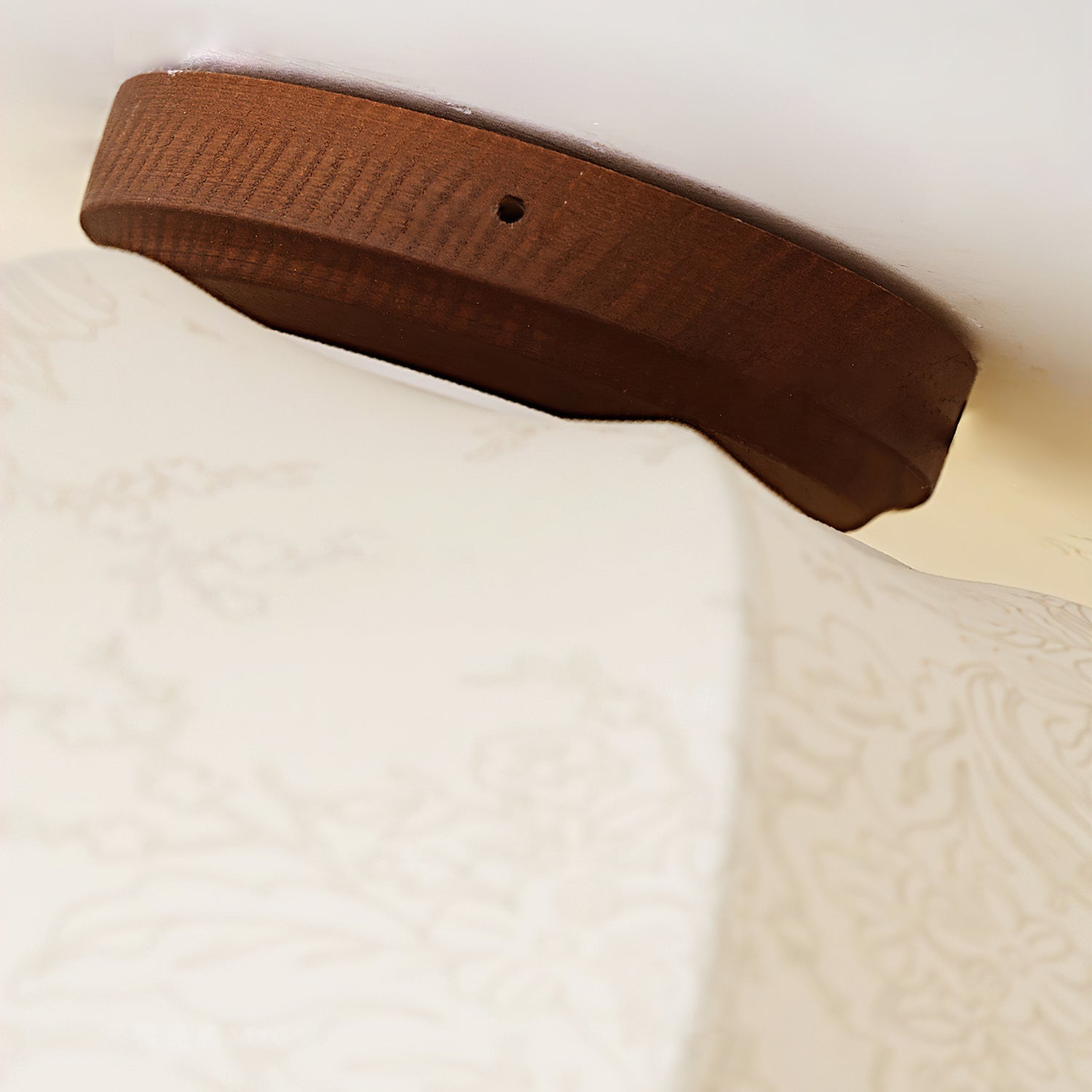 De Serica Plafondlamp Lamp brengt een subtiele elegantie en tijdloze sfeer in je interieur. Met zijn sculpturale vorm en zachte rondingen, geïnspireerd op traditionele zijden lantaarns, creëert deze plafondlamp een warme en rustgevende ambiance. De delicate stoffen kap, voorzien van verfijnde bloemmotieven, verspreidt een zachte gloed die iedere kamer uitnodigend maakt. Dankzij de houten accenten en natuurlijke materialen sluit de lamp perfect aan bij zowel moderne als klassieke woonstijlen. Ideaal voor slaapkamers, woonkamers of hal, waar de Serica zorgt voor stijl, warmte en rust.