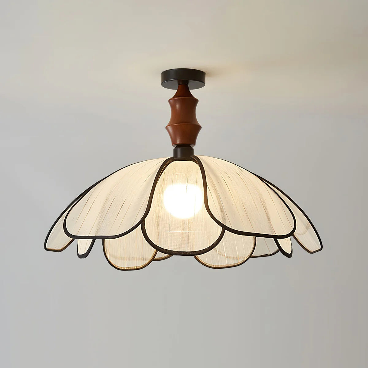 De Sonapeza Plafondlamp straalt poëtische elegantie uit met haar bloemvormige silhouet en verfijnde details. Het transparante ribbelglas, omlijst door opvallende zwarte lijnen, benadrukt de sierlijke bloemblaadjes en zorgt voor een luchtig, sfeervol effect. De warme houten accenten brengen balans en contrast, waardoor dit ontwerp perfect past in moderne interieurs. Of ze nu wordt geplaatst in de woonkamer, slaapkamer of hal, de Sonapeza biedt een harmonie van stijl en functionaliteit die elke ruimte verrijkt.