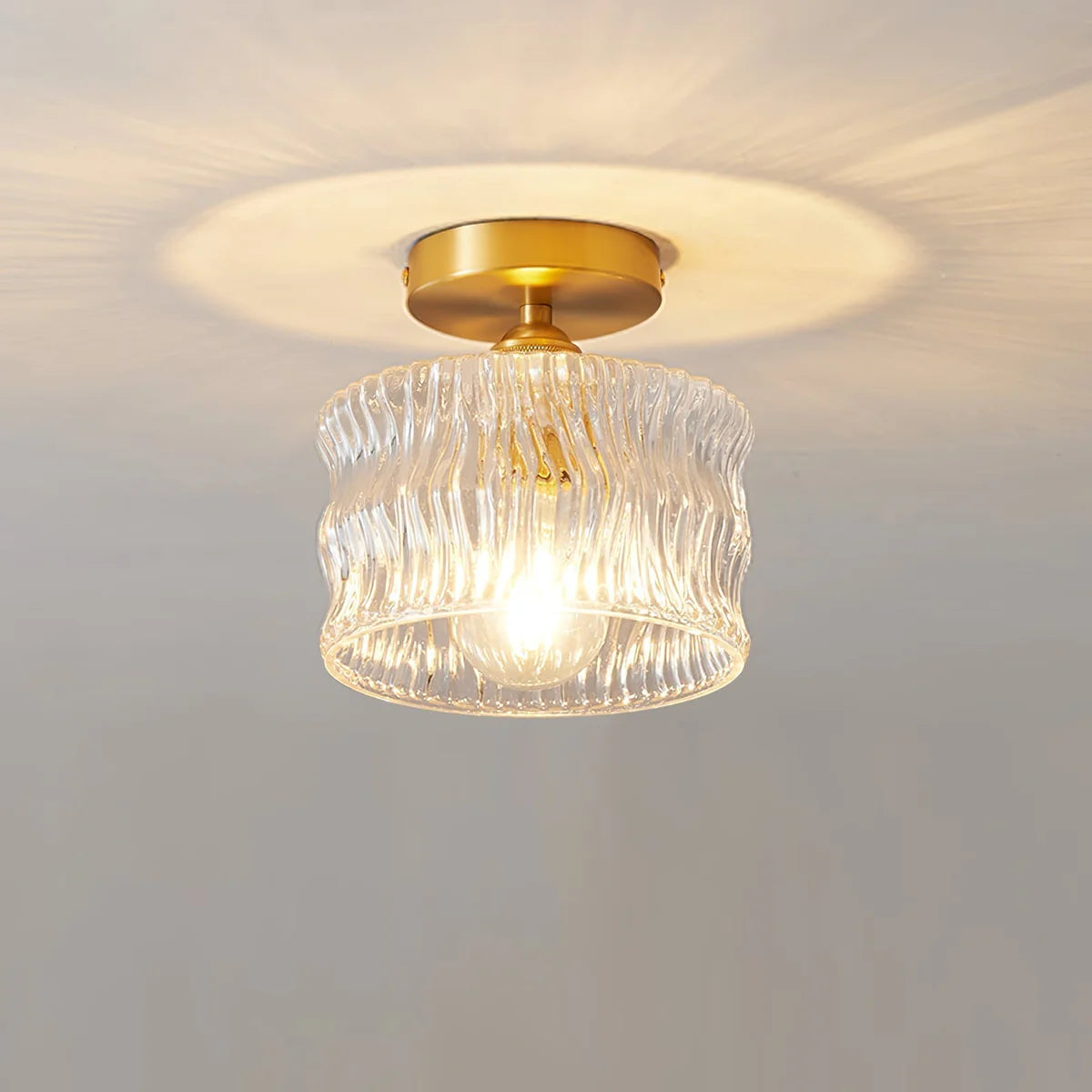 De Meltone Plafondlamp combineert modern glaswerk met een elegante plafondbevestiging in goudkleurige afwerking. Dankzij het compacte formaat is deze plafondlamp ideaal voor ruimtes met een lager plafond, zoals de hal, slaapkamer of woonkamer. De subtiel golvende glazen kap zorgt voor een mooie lichtspreiding en sfeervol effect op het plafond. Deze plafondlamp werkt met een E27 of E26 fitting en is geschikt voor standaard LED- of Edisonlampen. Door het heldere glas wordt het licht mooi verdeeld in de ruimte. Perfect voor wie op zoek is naar een stijlvolle glazen plafondlamp die past binnen een modern of eigentijds interieur.