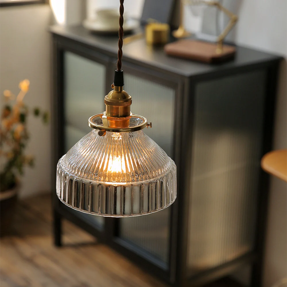 Breng een vleugje vintage sfeer in je interieur met de prachtige Silvessa hanglamp. Deze glazen hanglamp combineert een elegante koperen fitting met een helder glazen kap, perfect voor boven de eettafel, in de slaapkamer of in de hal. Dankzij de geribbelde structuur van het glas verspreidt de Silvessa hanglamp een sfeervol en warm licht dat elke ruimte uitnodigend maakt. Met zijn klassieke E27 fitting is deze lamp ideaal te combineren met diverse lichtbronnen. Kies voor tijdloze stijl en laat de Silvessa pendel jouw woonruimte verlichten met karakter en charme.