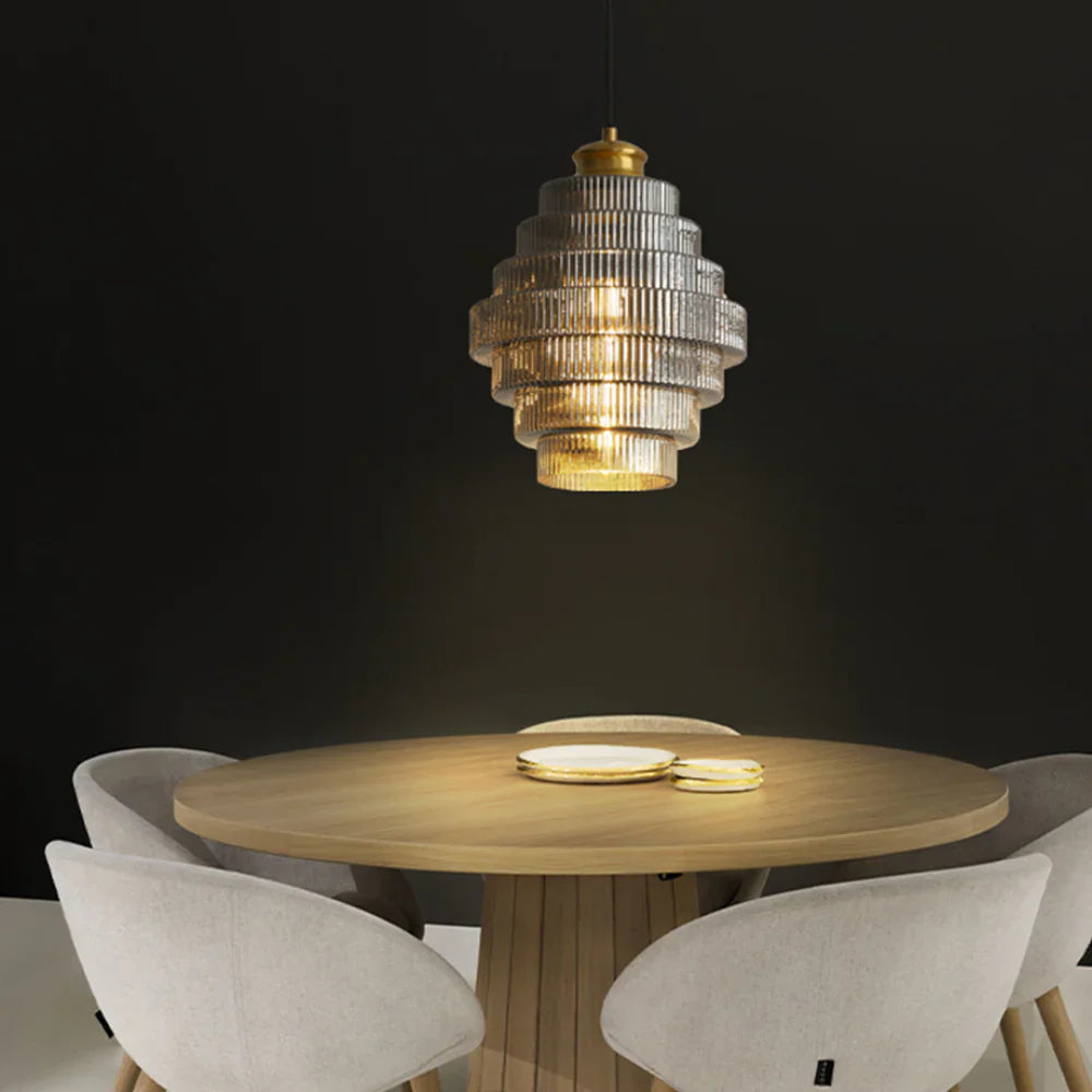 De Yolezza golvende glazen hanglamp brengt sfeer en karakter in iedere ruimte met zijn gelaagde, geribbelde glasstructuur. De speelse, golvende opbouw van het glas zorgt voor een bijzonder lichteffect wanneer de lamp brandt. Het ontwerp combineert glas en messing details en is daarmee een stijlvolle toevoeging aan zowel moderne als klassieke interieurs.